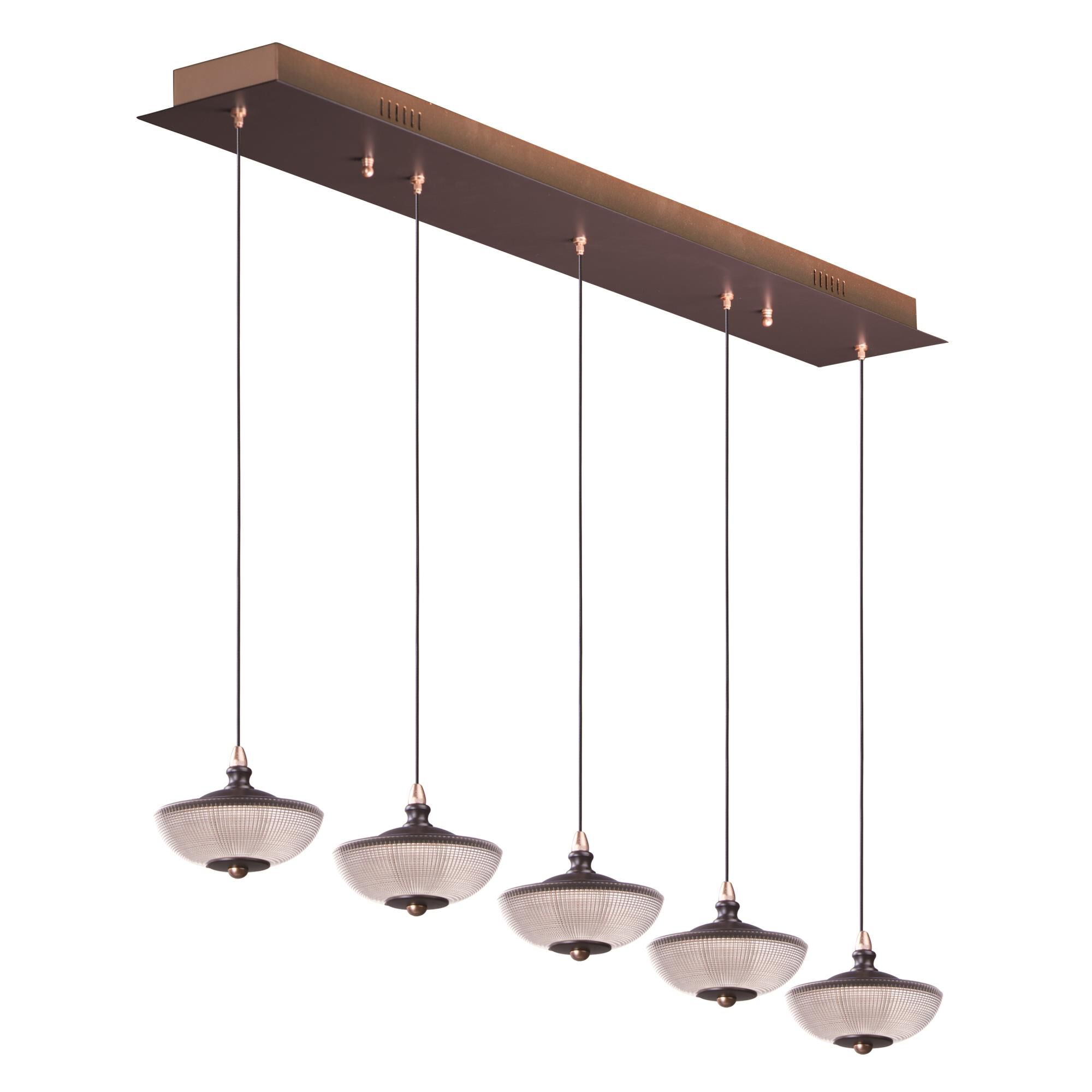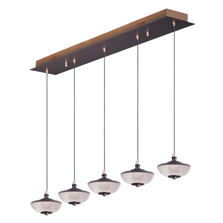 ET2 E23155-126BRZGLD Bella Flared Metal and Prismatic Glass Linear LED Pendant Ceiling Lighting, 5-Light 20 Total Watts, 5"H x 6"W x 43"L, Bronze / Gold