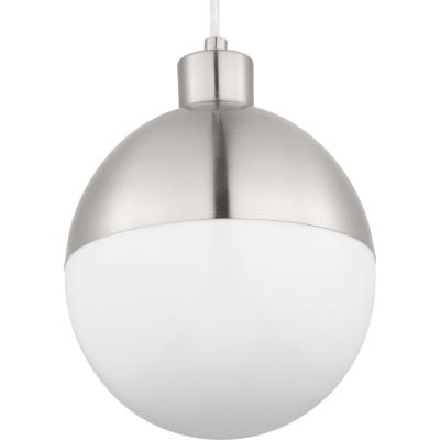 Globe LED Collection 1-Light Opal Glass Mid-Century Modern Pendant Light Brushed Nickel
