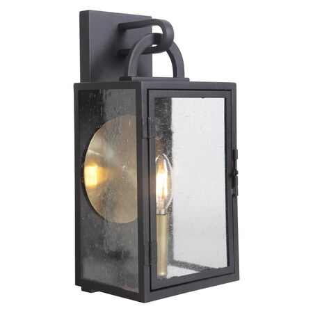 - DETAILS: Constructed of Cast Aluminum with Textured Matte Black Finish and Clear seeded Glass Shade