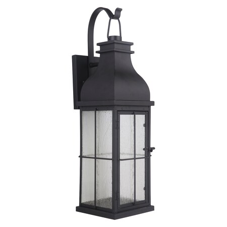 - DETAILS: Constructed of Cast Aluminum with Midnight Finish and Clear seeded Glass Shade