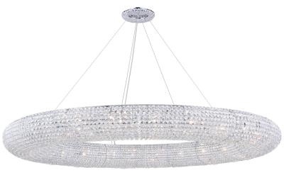 The magnificent chandeliers of the Paris collection live up to their namesake?s title as the ?City of Light.? The chrome-finish fixtures exude glamour with a sparkling circle of clear, royal-cut octagon crystals highlighted by 18 or 24 interior lights (not included). Topping off the extravagance is a crystal halo dressing the canopy that replicates the fixture. Create your own enlightened era in your home with this contemporary chandelier that comes fully assembled. It will provide all-around light for your dining room, living room, bedroom, bathroom, or entryway.