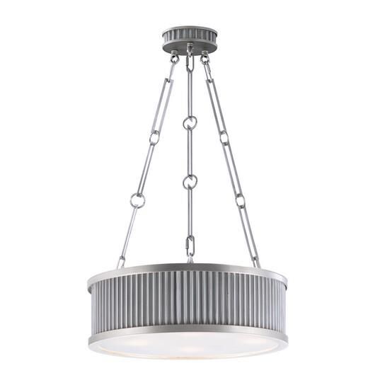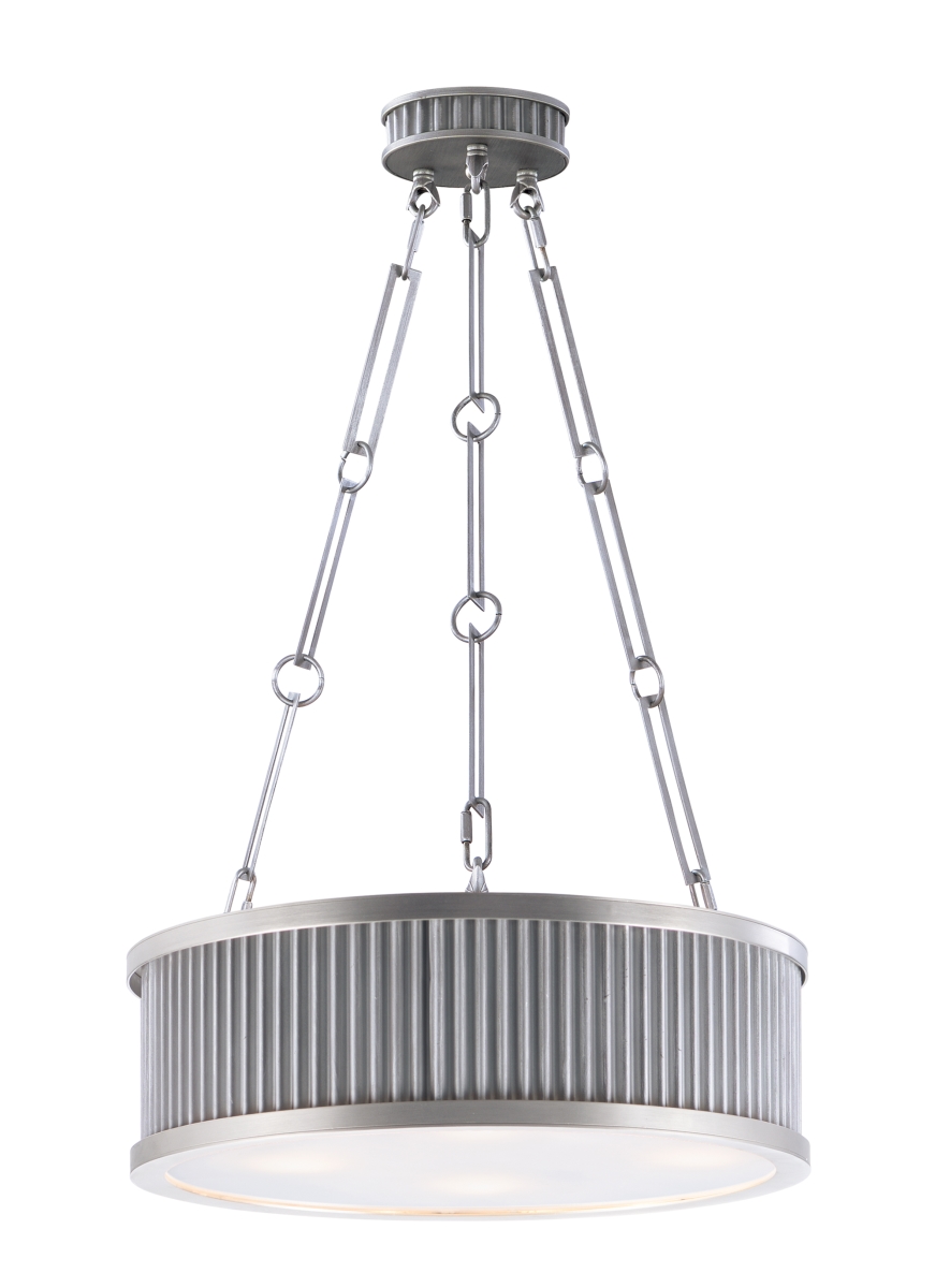 Ribbed metalwork is framed in drum or square formed options available in both ceiling mounts and pendants. The two-tone finish of Oil Rubbed Bronze with Burnished Brass frame offers classic styling while Weathered Zinc with Matte Satin Nickel offers a more country elegant option. The incandescent lighting is softly diffused through a frosted glass diffuser. Canopy Included: TRUE / Canopy Diameter: 5 x 5 x 1<LI>Lumens: 1700.