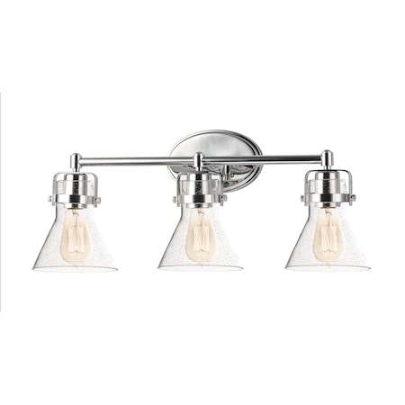 Maxim 26113CDPC Seafarer Seedy Glass Bath Vanity Wall Mount, 3-Light 180 Total Watts, 10"H x 24"W, Polished Chrome