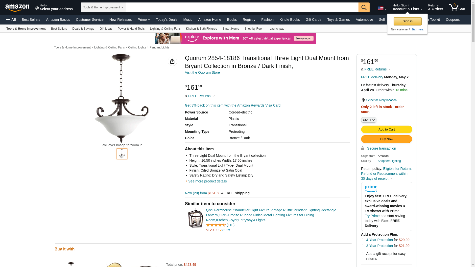| brecherslighting.com | 2854-18186 | 1 | 129 | 1 | 1 @ $161.50 |