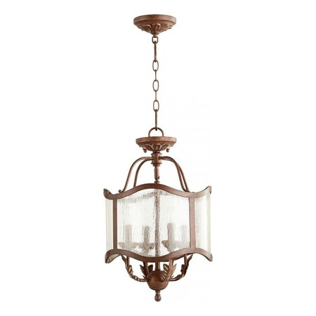 Quorum Lighting 2906 – 13 – 39 – Salento Collection Pendant Lighting in classic copper uses incandescent light output and adds vintage style. This item is 20.5" H x 13" W. Wattage is 240. Lighting quorum 2906 – 13 – 39 – Requires 4 bulbs (included). Additional Information: Seeded glass, shade-clear.