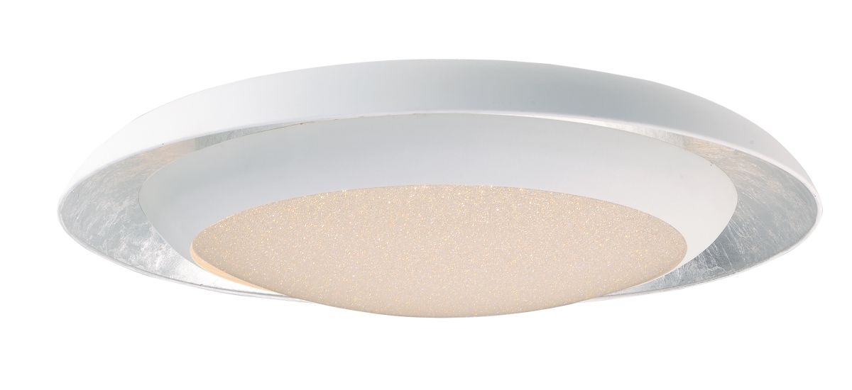 Maxim 35078CYSLWT Iris Acrylic Dome LED Flush Mount, 1-Light 58.8 Watt, 6"H x 30"W, Silver Leaf / White