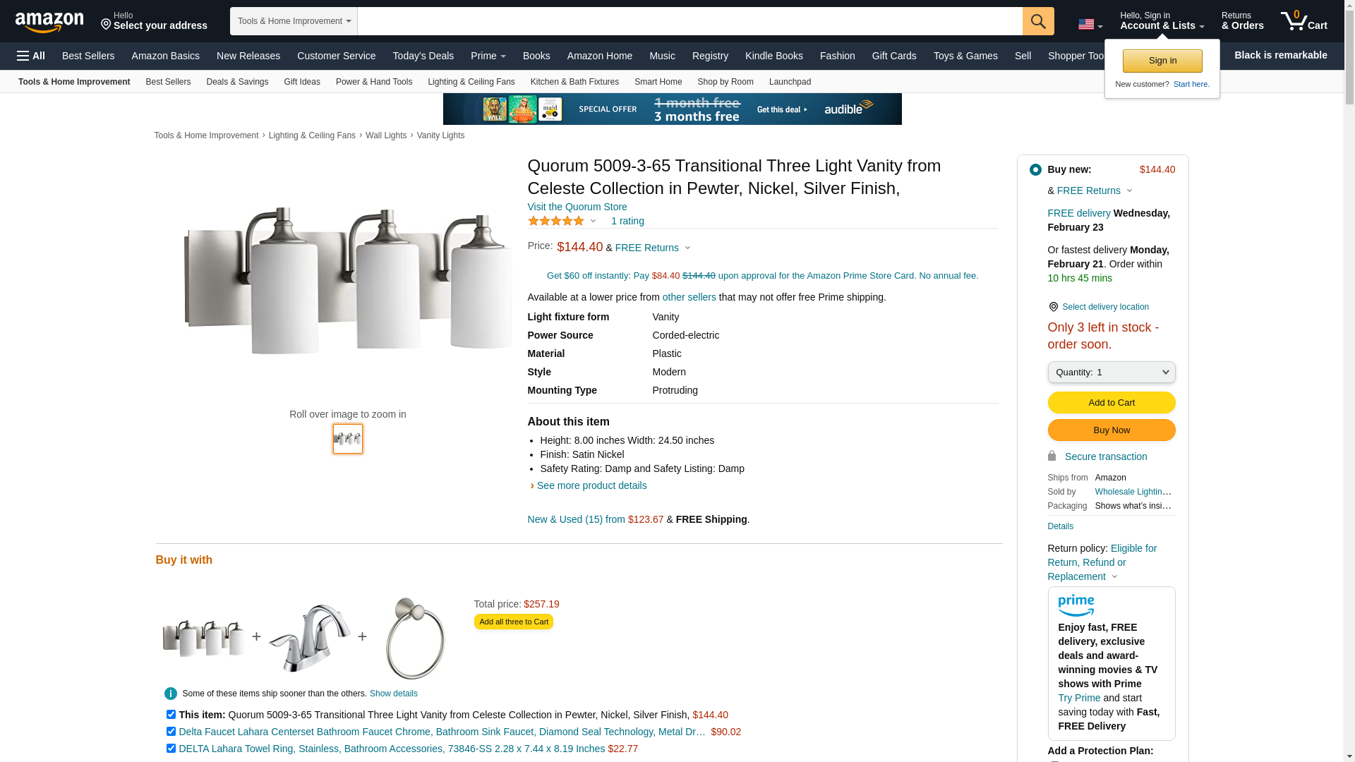 | lightingandlocks.com | 5009-3-65 | 1 | 119 | 1 | 1 @ $199.00 |