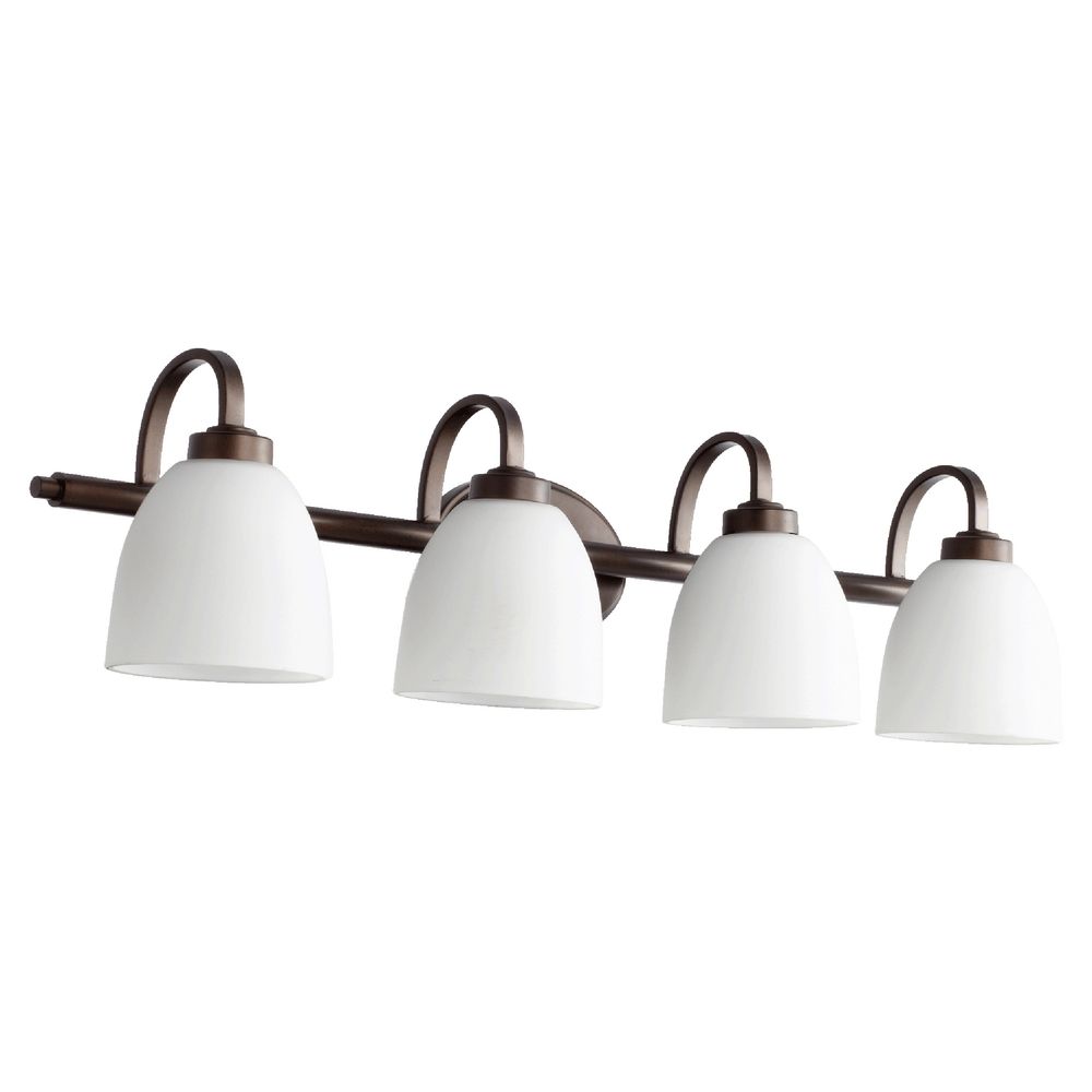 Quorum 5060-4-86 Reyes - Four Light Bath Vanity, Oiled Bronze Finish with Satin Opal Glass