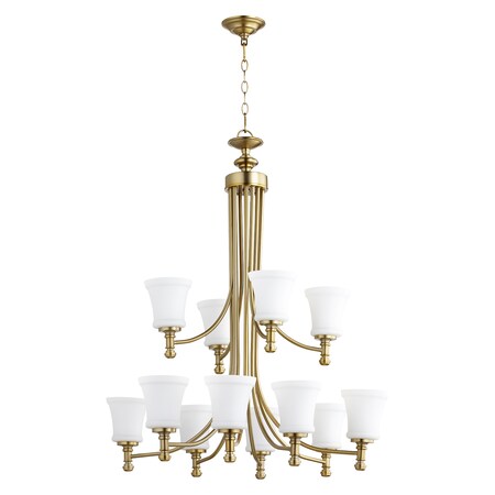 Quorum 6122-12-80 Transitional 12 Light Chandelier from Rossington Collection in Brass - Antique Finish,