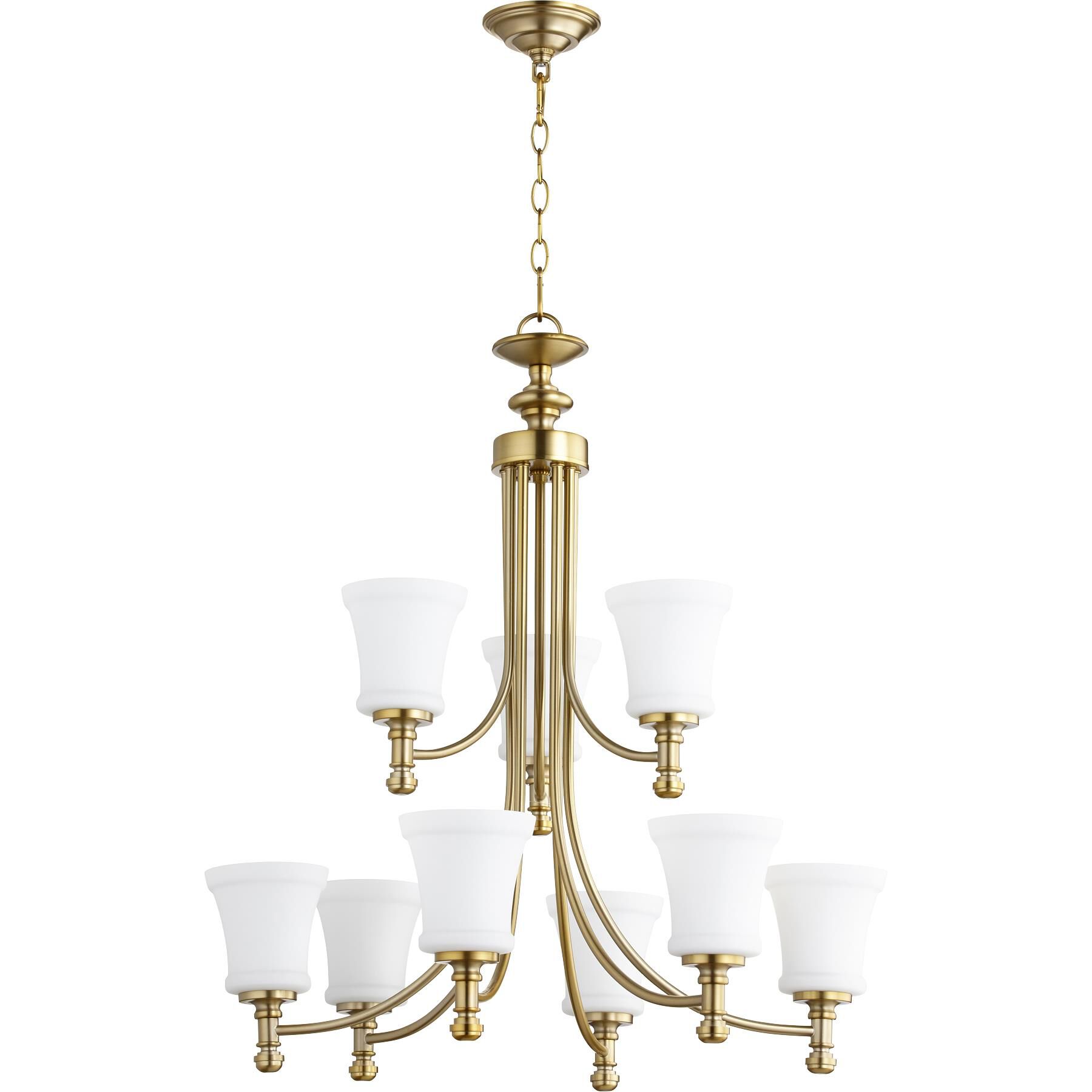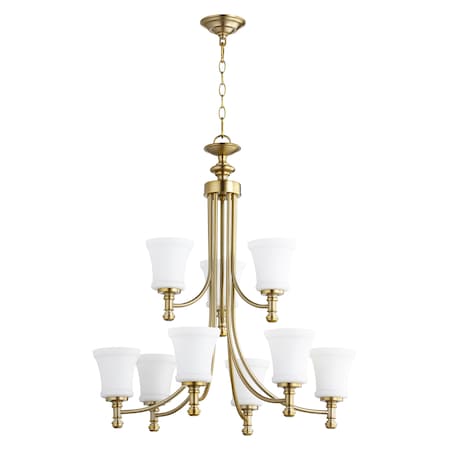 Quorum 6122-9-180 Transitional Nine Light Chandelier from Rossington Collection in Brass - Antique Finish,