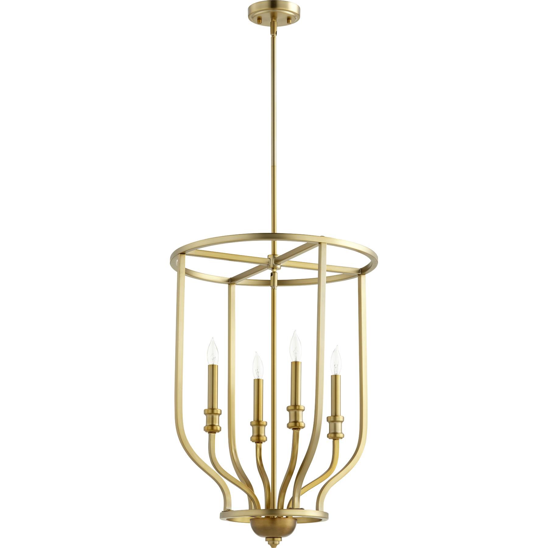 Quorum 6711-4-80 Transitional Four Light Entry Pendant from Richmond Collection in Brass - Antique Finish,