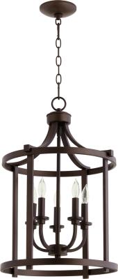 Quorum 6807-5-86 Transitional Five Light Entry Pendant from Lancaster Collection in Bronze/Dark Finish,