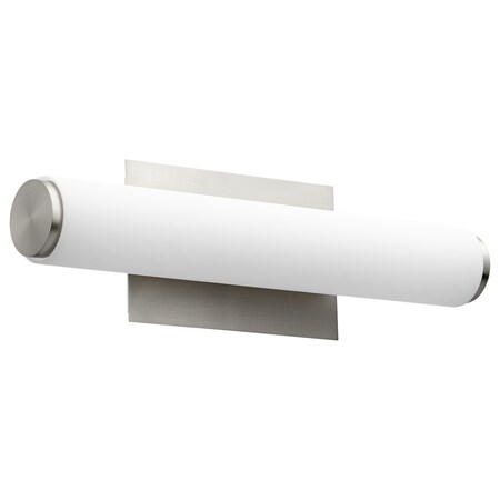 Quorum 911-18-65 Vanity, 1-Light LED, 13 Watts, Satin Nickel w/Matte White Acrylic