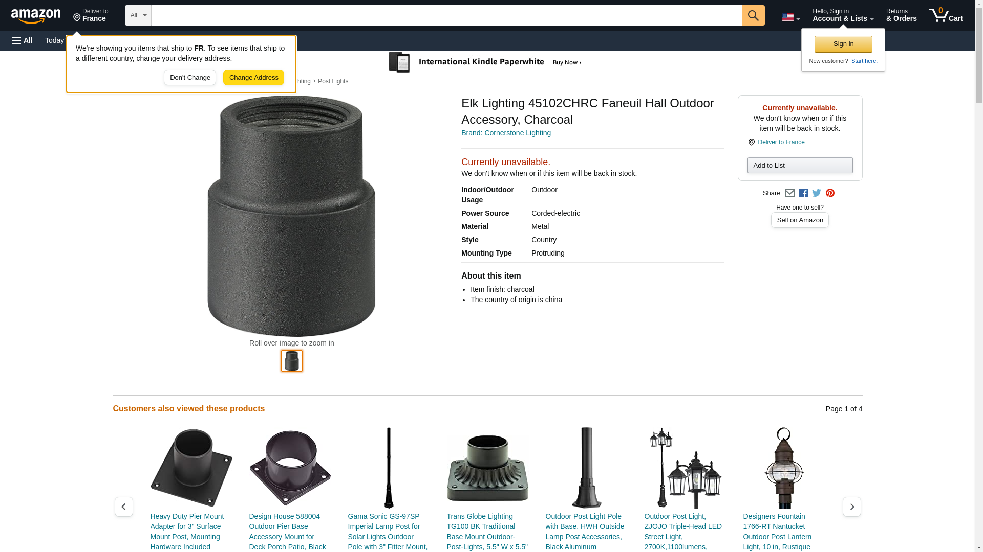 Elk Lighting 45102CHRC Faneuil Hall Outdoor Accessory, Charcoal