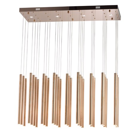 ET2 E10010-RG Flute Mini Metal Tubes Rectangular LED Pendant Ceiling Lighting, 35-Light 35 Total Watts, 18" H x 12" W x 36" L, Rose Gold