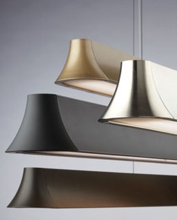 Hard and soft lines converge in this elegantly simple silhouette equally suitable for both residential and commercial settings. A bottom acrylic diffuser provides a glare free wash of light. A highly reflective inner white housing and two high output fluorescent lamps ensure this fixture performs as well as it looks. Offered in 38" which includes two 39 watt high output T5 linear fluorescent lamps or 2600 lumen, 3000K linear LED strips and 49" which includes two 54 watt high output T5 linear fluorescent lamps or 3500 lumen, 3000K linear LED strips. Has a maximum drop length of 6 feet. Available Finishes: Antique Bronze, Black, Satin Nickel.