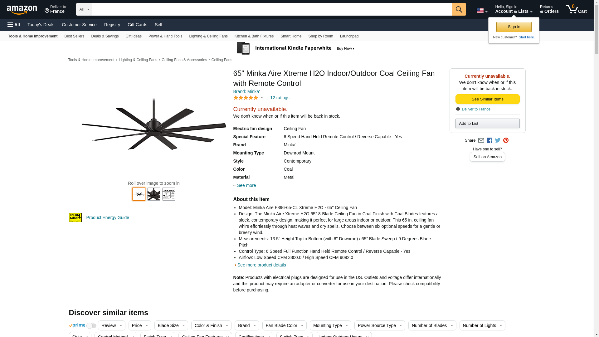 - Design: The Minka Aire Xtreme H2O 65" 8-Blade Ceiling Fan in Coal Finish with Coal Blades features a sleek, contemporary design, making it perfect for large areas indoor or outdoor. This 65 in. ceiling fan whirs effortlessly through heat waves and dry spells. Choose between six optional speeds for a gentle or breezy wind.