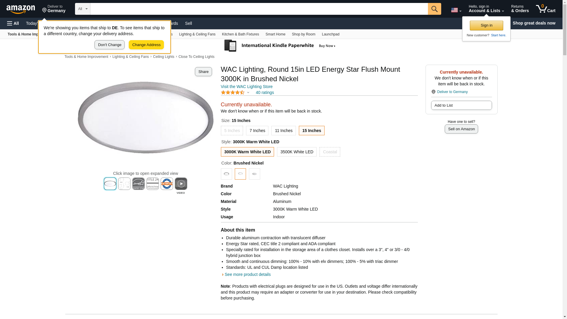 WAC Lighting, Round 15in LED Energy Star Flush Mount 3000K in Brushed Nickel