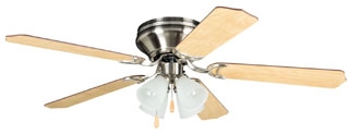 - FAN BLADES: 5 Ash / Mahogany Blades (52" Span / 11° Blade Pitch); CFM: 925