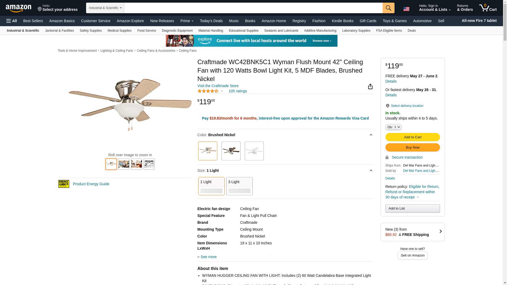![]() gordonelectricsupply.com | WC42BNK5C1 | 1 | Craftmade Orders usually Ship Next Day | 1 | 1 @ $119.00 |