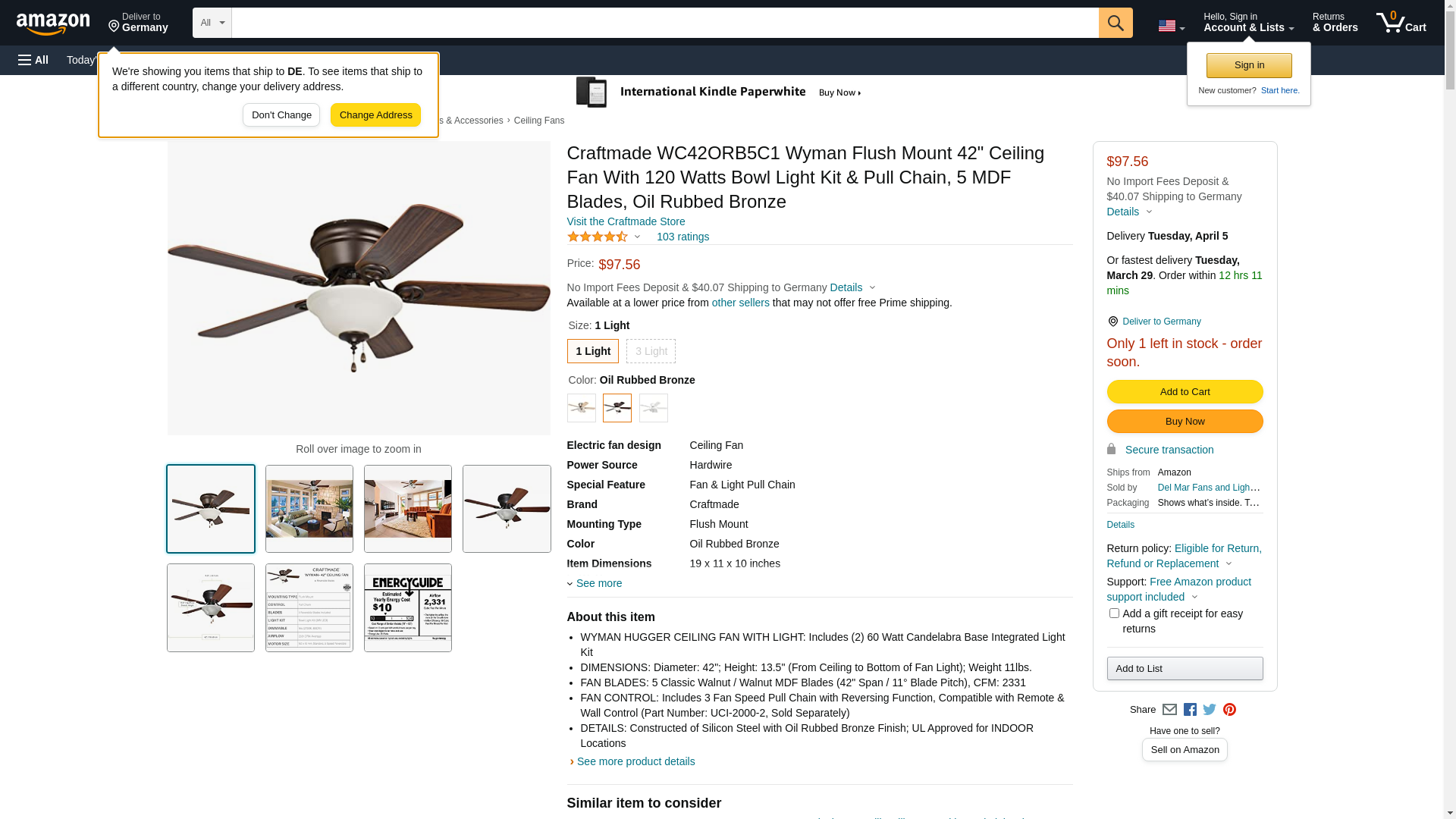 | WC42ORB5C1 | 1 | Craftmade Orders usually Ship Next Day | 1 | 1 @ $119.00 | |