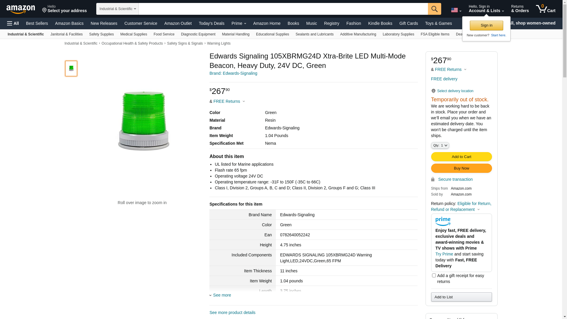 | Feature | <b>Price For:</b> 1 Each <b> IP / NEMA Rating:</b> NEMA 4X <b> Flash Rate Per Minute:</b> 65 <b> Bulb Diameter:</b> 9mm <b> Current Rating:</b> 215mA <b> Length:</b> 121mm <b> Light Source:</b> LED |