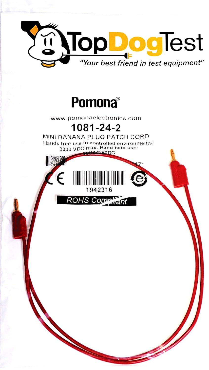 POMONA 1081-36-2 TEST CABLE ASSY, BANANA PLUG, RED, 36IN (1 piece)