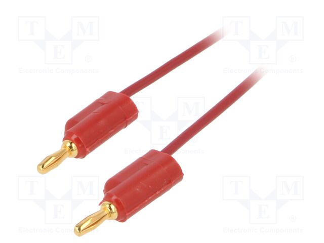- Price For: Each Lead Length: 36" Insulator Color: Red Test Connector Type A: 3mm Banana Stackable Test Connector Type B: 3mm Banana Stackable Voltage Rating: 3kV Cable Length: 91.44cm Color: Red RoHS Compliant: Yes