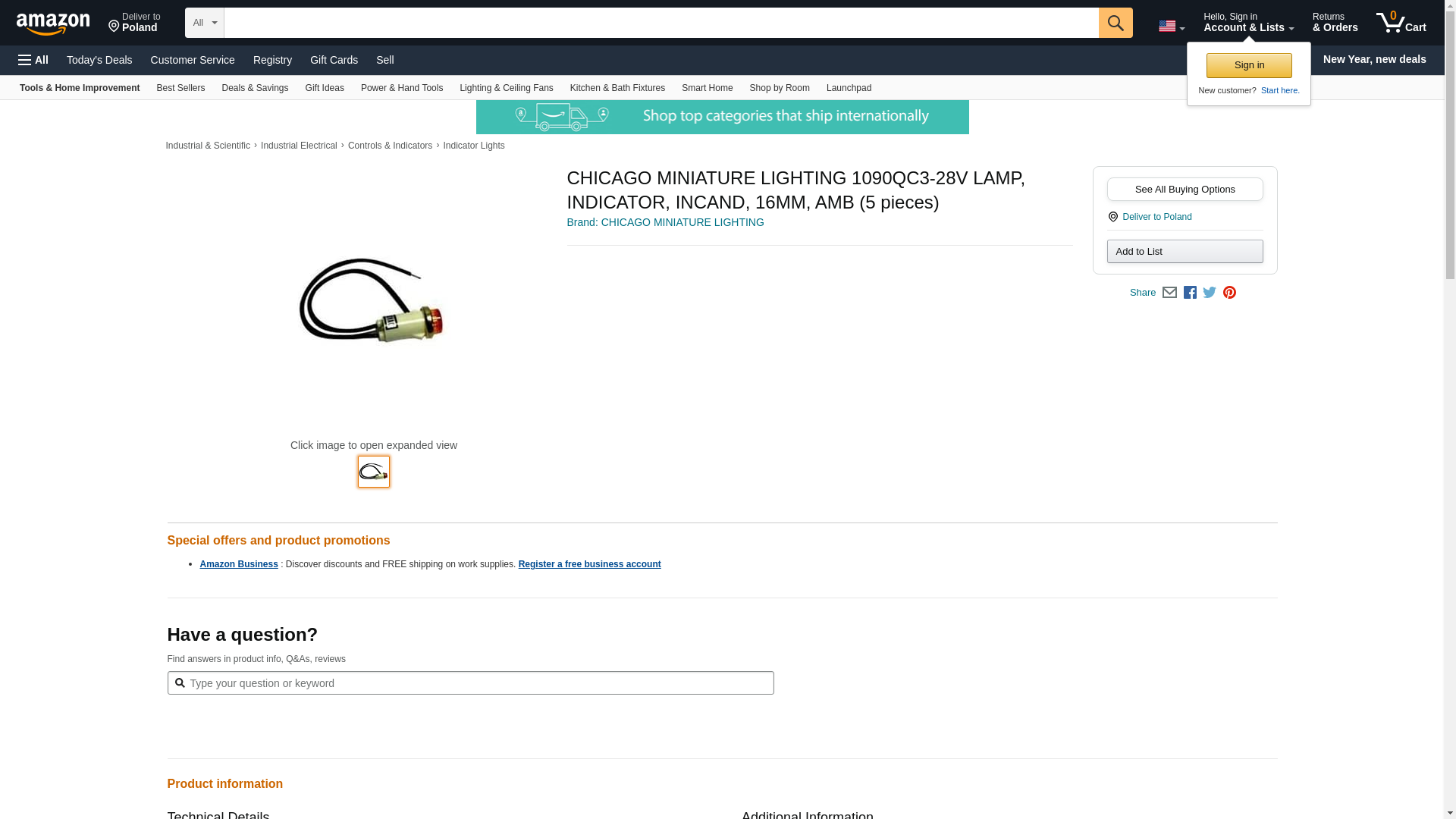 CHICAGO MINIATURE LIGHTING 1090QC3-28V LAMP, INDICATOR, INCAND, 16MM, AMB (500 pieces)