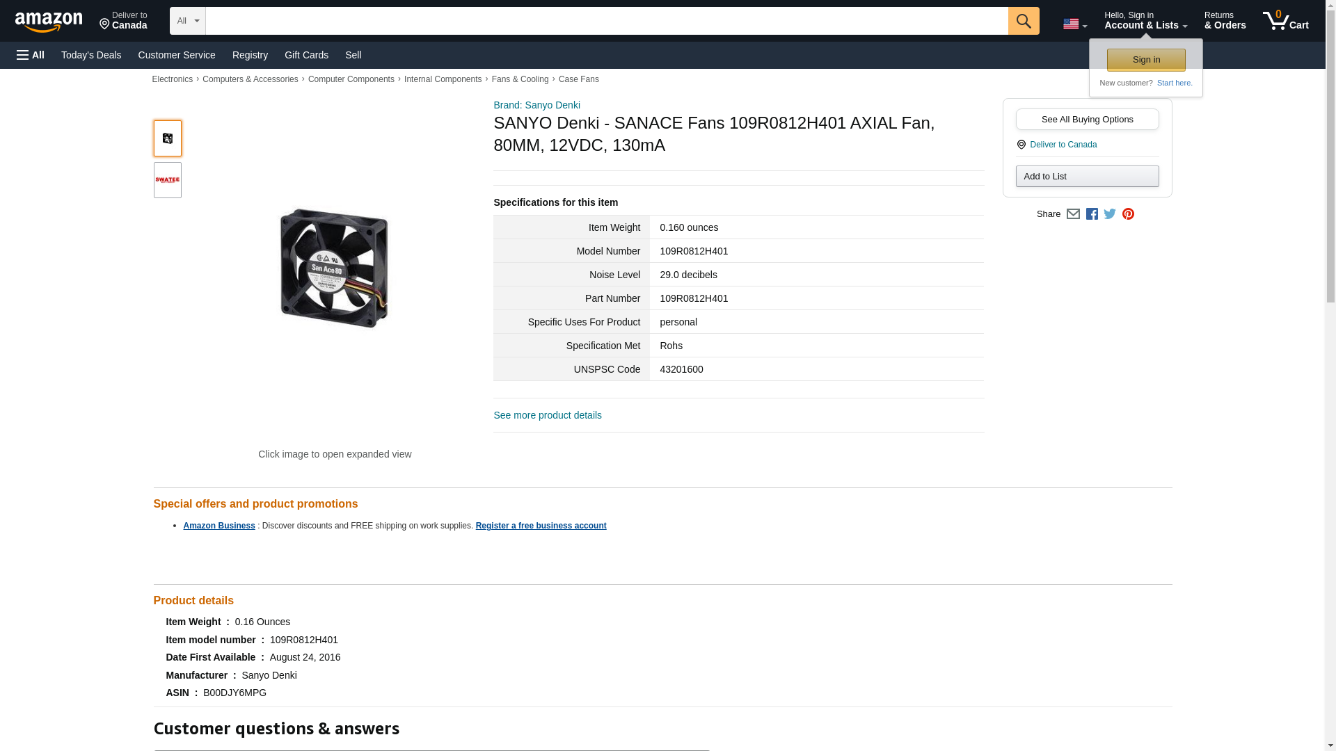 SANYO DENKI - SANACE FANS 109R0812H401 AXIAL FAN, 80MM, 12VDC, 130mA