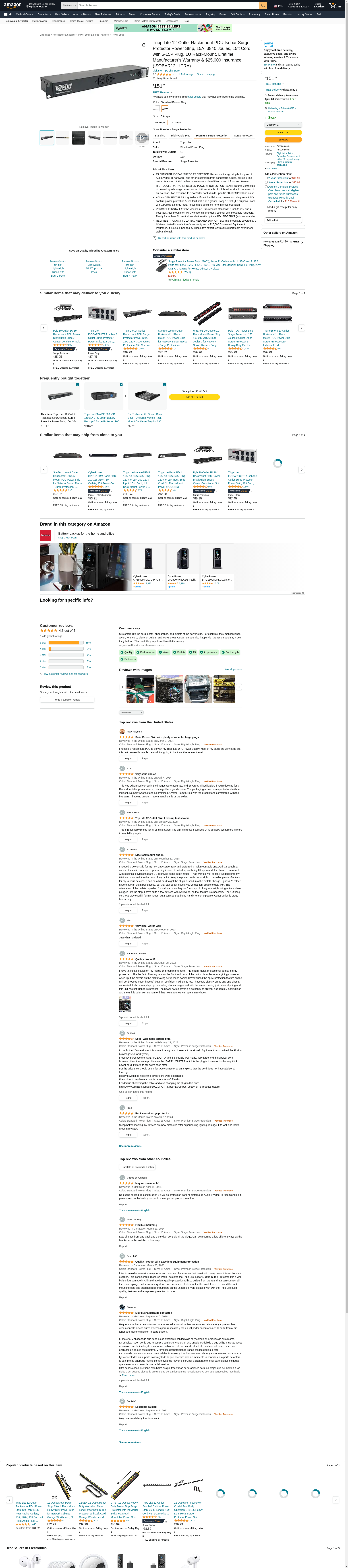 Amazon.com: Tripp Lite 12-Outlet Rackmount PDU Isobar Surge Protector Power Strip, 15A, 3840 Joules, 15ft Cord with 5-15P Plug, 1U Rack-Mount, Lifetime Manufacturer's Warranty & $25,000 Insurance (ISOBAR12ULTRA) : Electronics