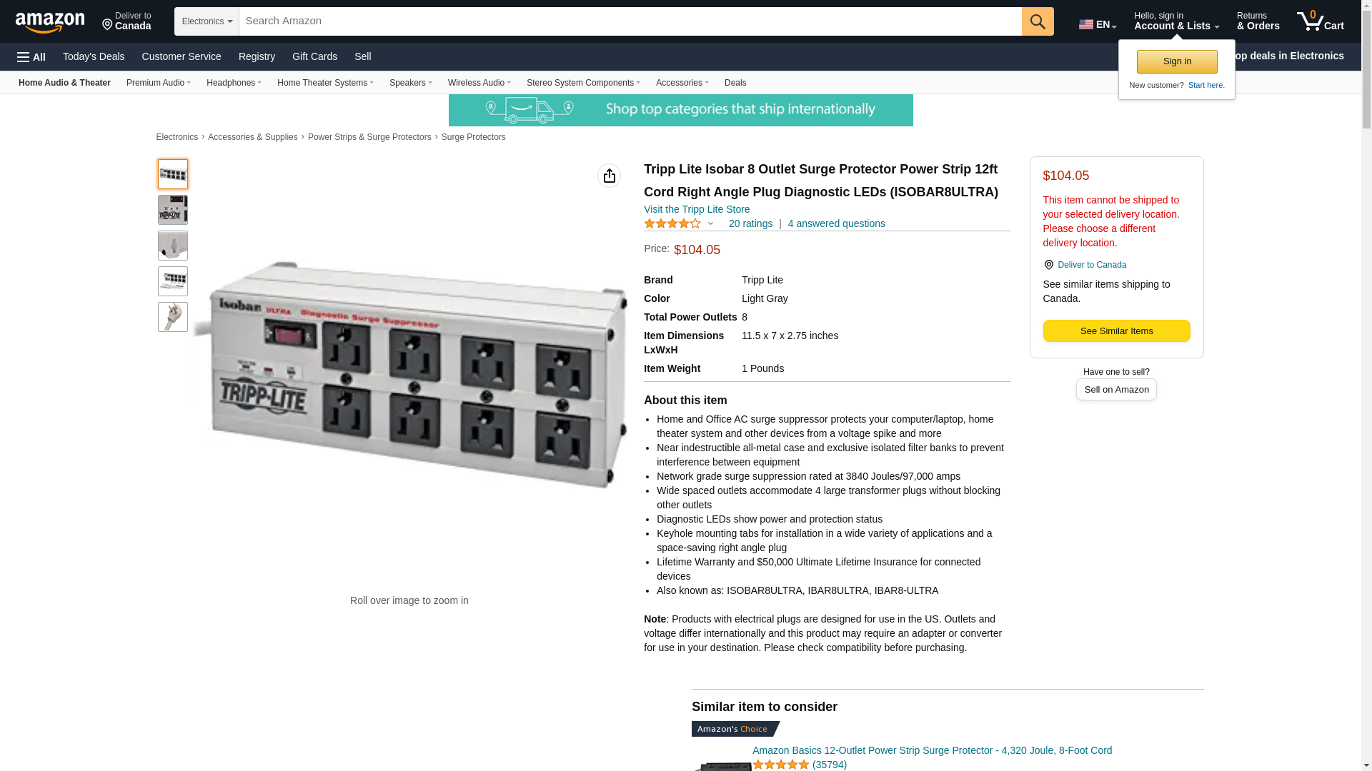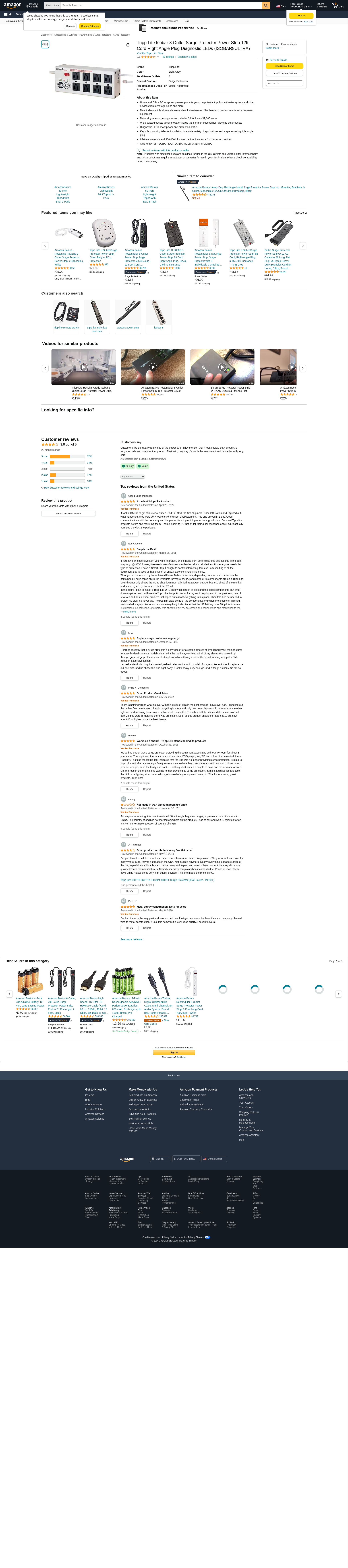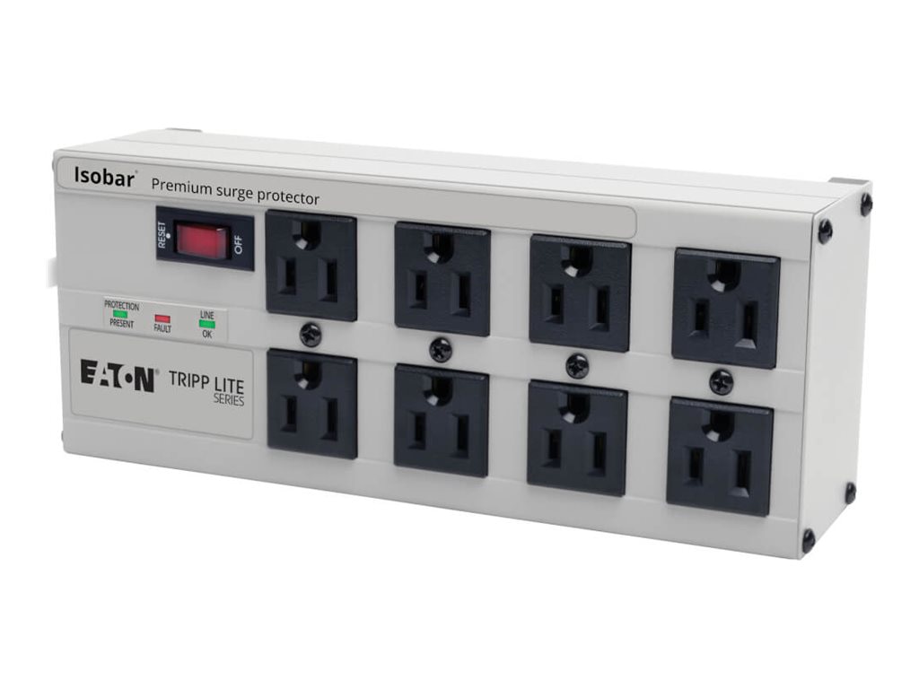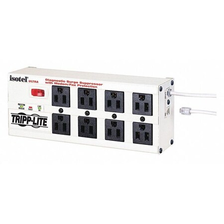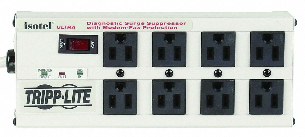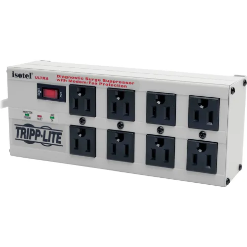 - Tripplite ISOTEL8ULTRA Isobar Metal Surge Suppressor, 8 Outlets, 12 ft Cord, 3840 Joules, Light Gray
