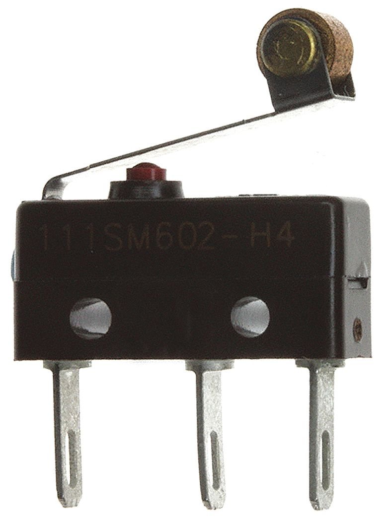 Honeywell Snap Action Switch 111SM602-H4 N.O. N.C. with screw mount and SPDT roller lever actuator, quick connect termination.