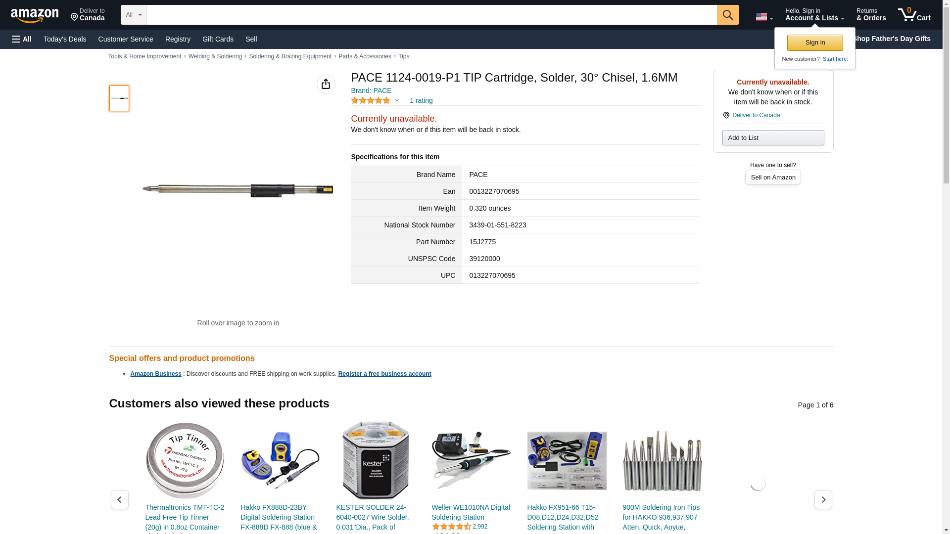 | Feature | Price For: Each Standards: RoHS Compliant Type: 30 Degrees Chisel Application: Soldering Item: Soldering Tip Size: 0.062" Country of Origin (subject to change): United States |