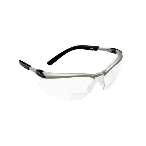 3M BX Reader Safety Eyewear with ReadersManufactured by: 3MSilver/black frame.Contoured, fully adjustable design features soft nosebridge, three lens angles for custom fit, and polycarbonate lenses that absorb 99.9% UV.Adjustable soft-tip temples.Includes integrated bifocal reader for workers who need extra magnification during close-up work.Meets the requirements of CSA Z94.3-2007 and the High Impact requirements of ANSI Z87.1-2003.Standard pack 20/Bx.