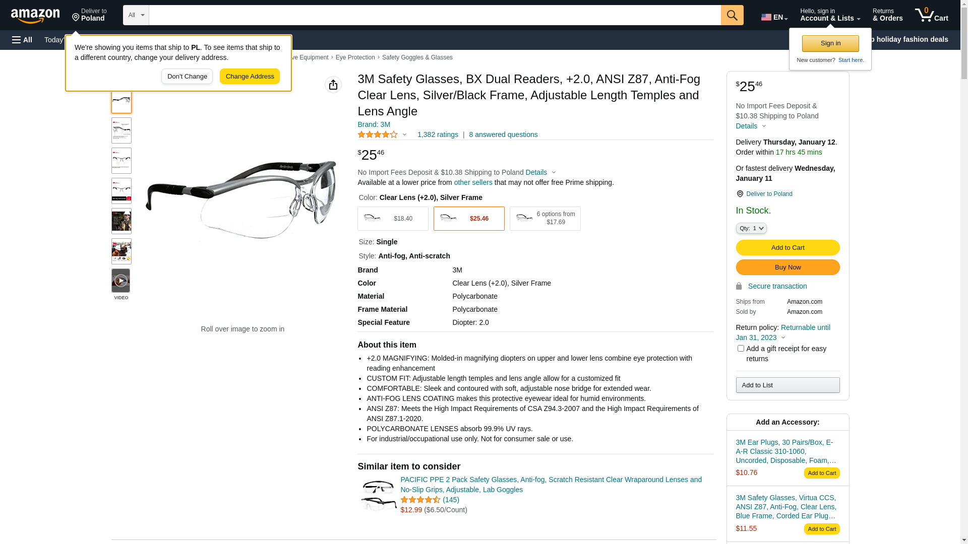 | Feature | Price For: Each Lens Style: Anti Fog, Magnified Lens Color: Clear Safety Category: ANSI Z87.1-2003 Magnification: 2X RoHS Compliant: NA |