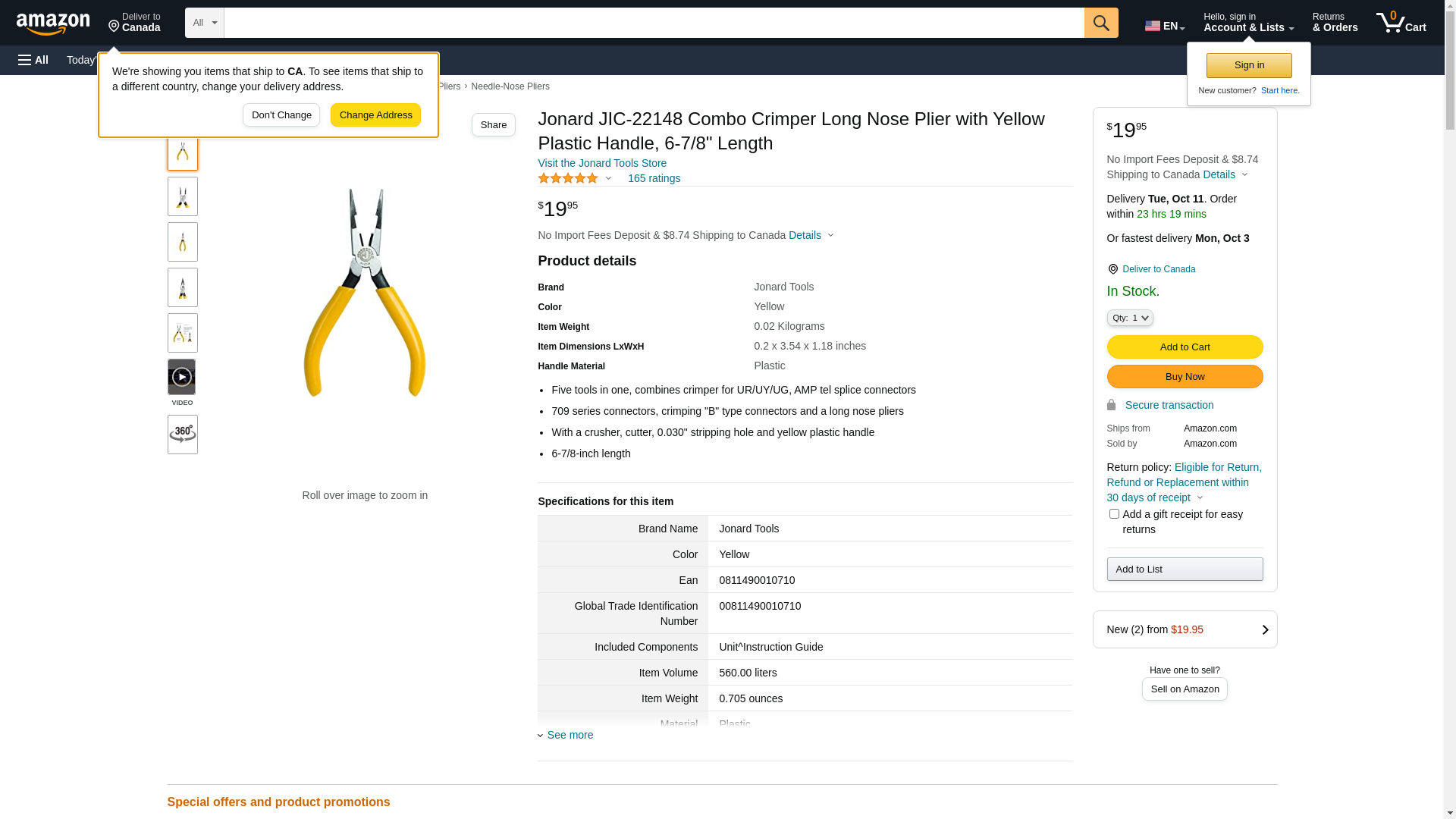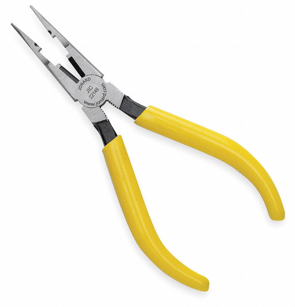 Jonard JIC-22148 Combo Crimper Long Nose Plier with Yellow Plastic Handle, 6-7/8" Length