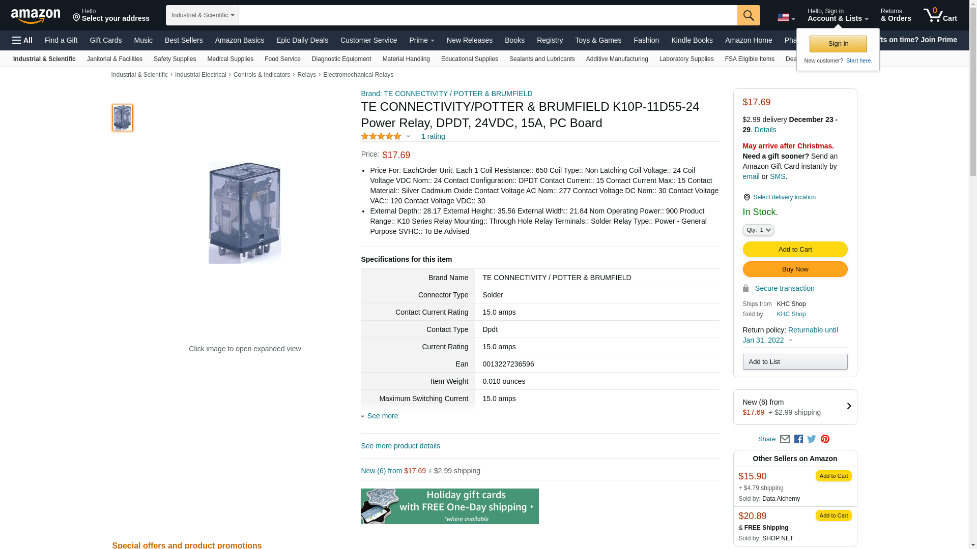 | Waldom | TE CONNECTIVITY POTTER-BRUMFIELD K10P-11D55-24 | 4 | 1 | 4 @ $14.79, 21 @ $12.76, 44 @ $12.11 | |