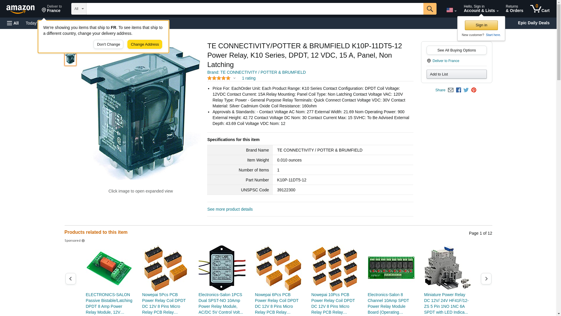 ![]() Onlinecomponents.com | K10P-11DT5-12 | 1 | 551 | 1 | 1 @ $9.55, 10 @ $8.59, 15 @ $8.16, 25 @ $7.75, 50 @ $7.37, 250 @ $7.14, 500 @ $6.31 |