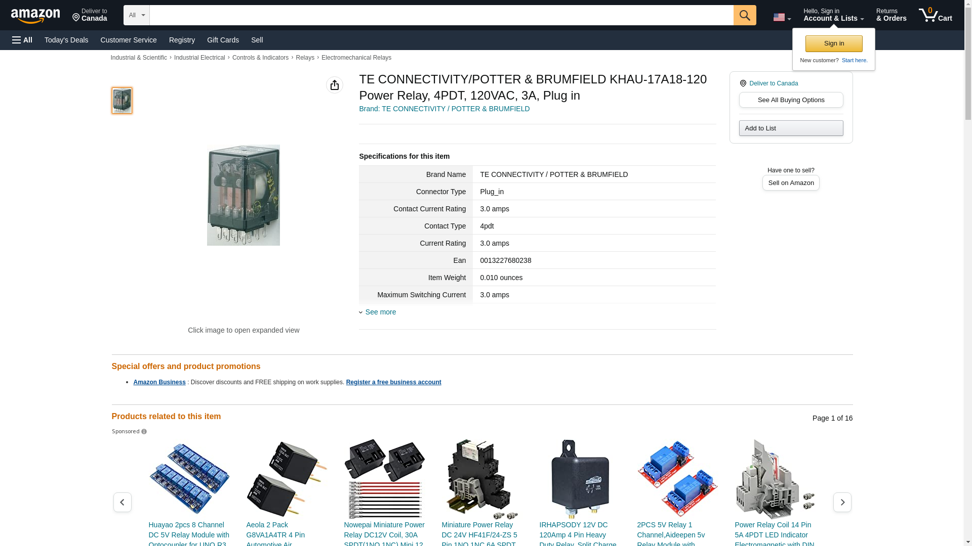 | Feature | TE CONNECTIVITY / POTTER & BRUMFIELD KHAU-17A18-120 POWER RELAY, 4PDT, 120VAC, 3A, PLUG IN |