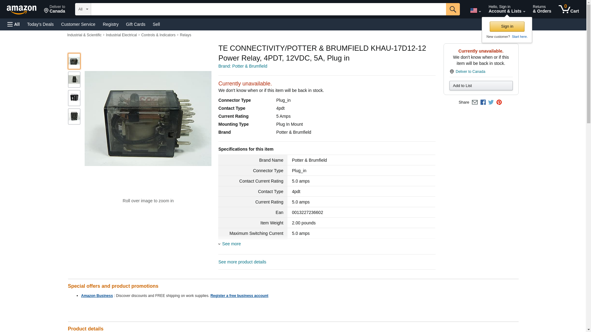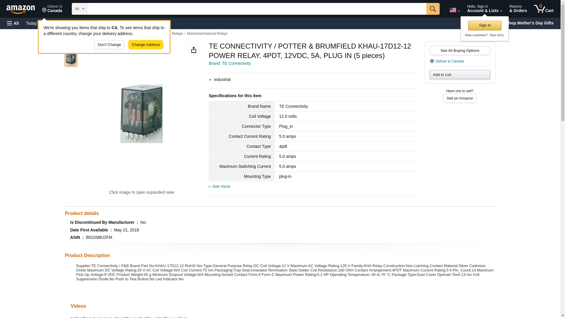 | Feature | TE CONNECTIVITY / POTTER & BRUMFIELD KHAU-17D12-12 POWER RELAY, 4PDT, 12VDC, 5A, PLUG IN |