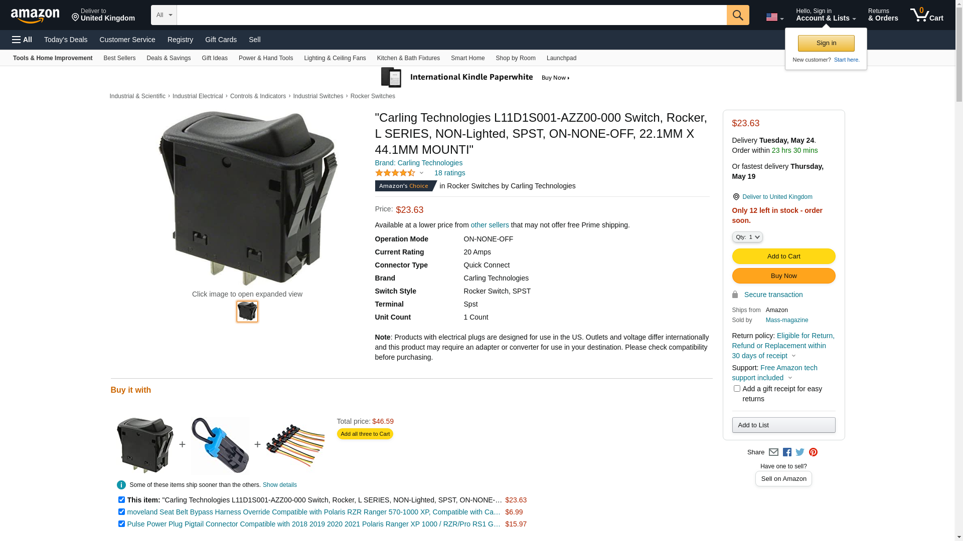 - Carling Technologies L-Series Rocker Switch L11D1S001-AZZ00-000