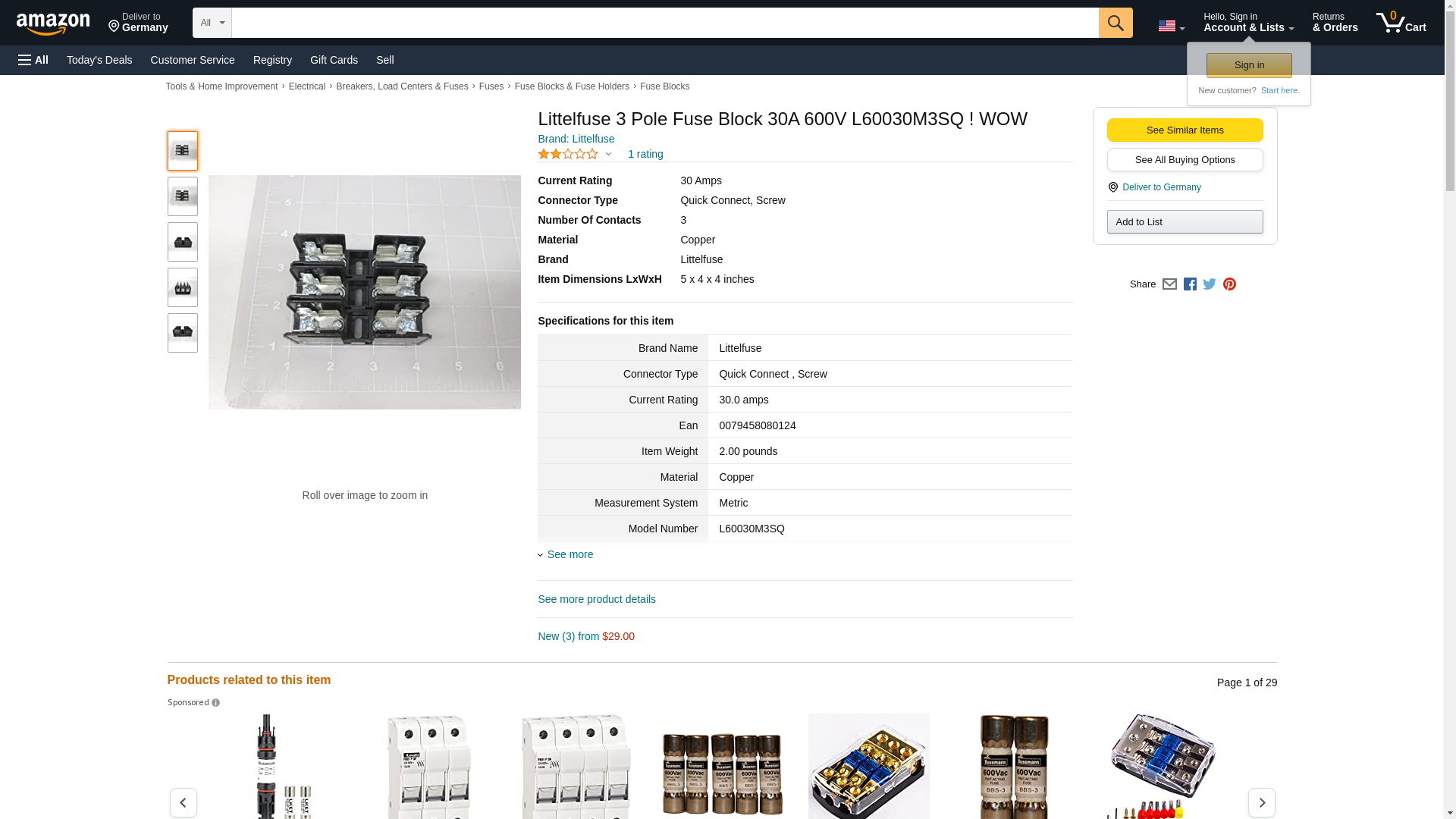 | Fuses Unlimited | L60030M3SQ | 1 | 1548 | 1 | 1 @ $16.02, 10 @ $15.18 |