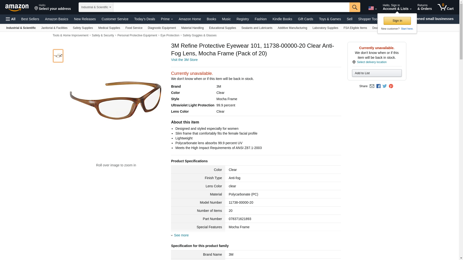 3M Refine Protective Eyewear 101, 11738-00000-20 Clear Anti-Fog Lens, Mocha Frame (Pack of 20)