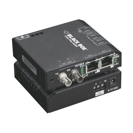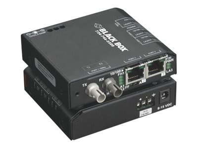Black Box EXTR Switch (2) 10/100 RJ45, (1) 100 MM, 1300nm 2km ST, 220VAC