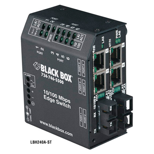Black Box Standard Heavy Duty Edge Switch - 2 x ST , 4 x RJ-45 - 100Base-X, 10/100Base-TX - External, Rack-mountable, Wall-mountable