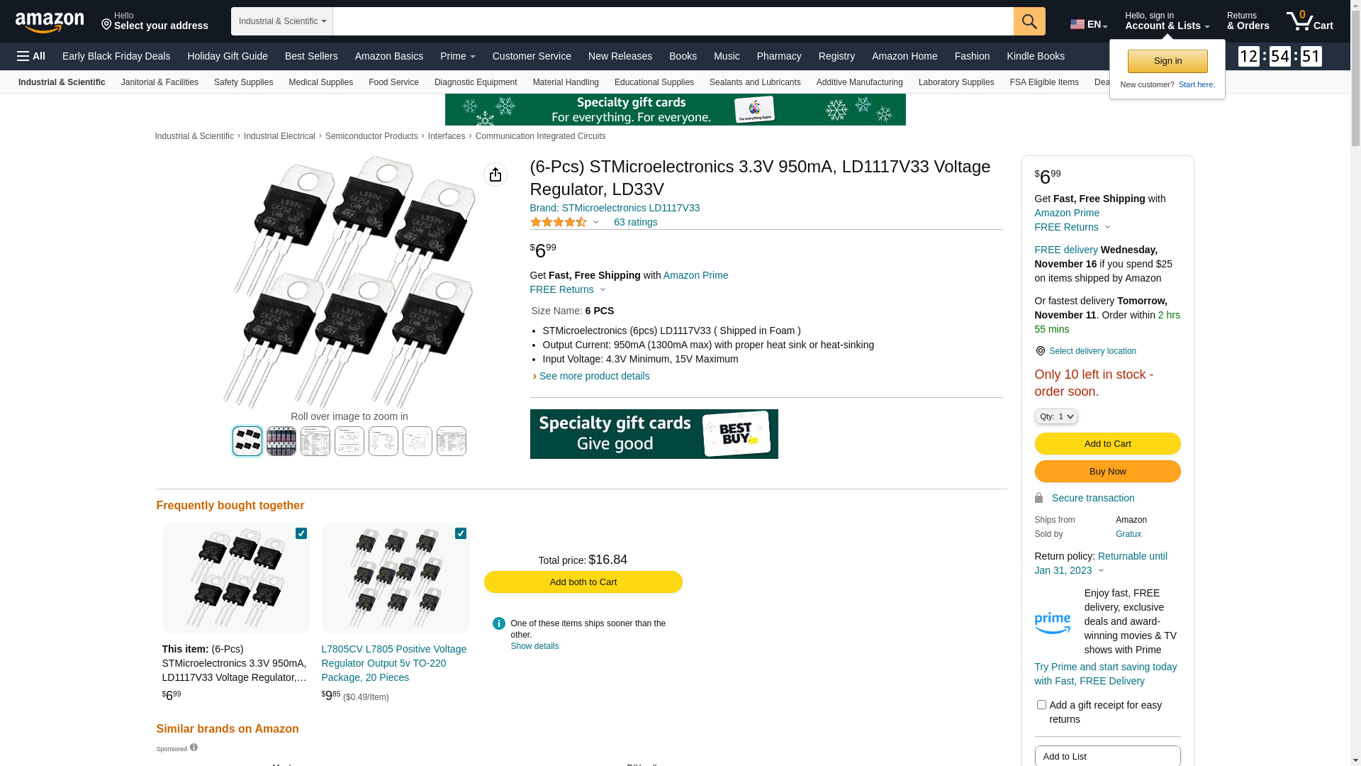 - STMicroelectronics (6pcs) LD1117V33 ( Shipped in Foam )
