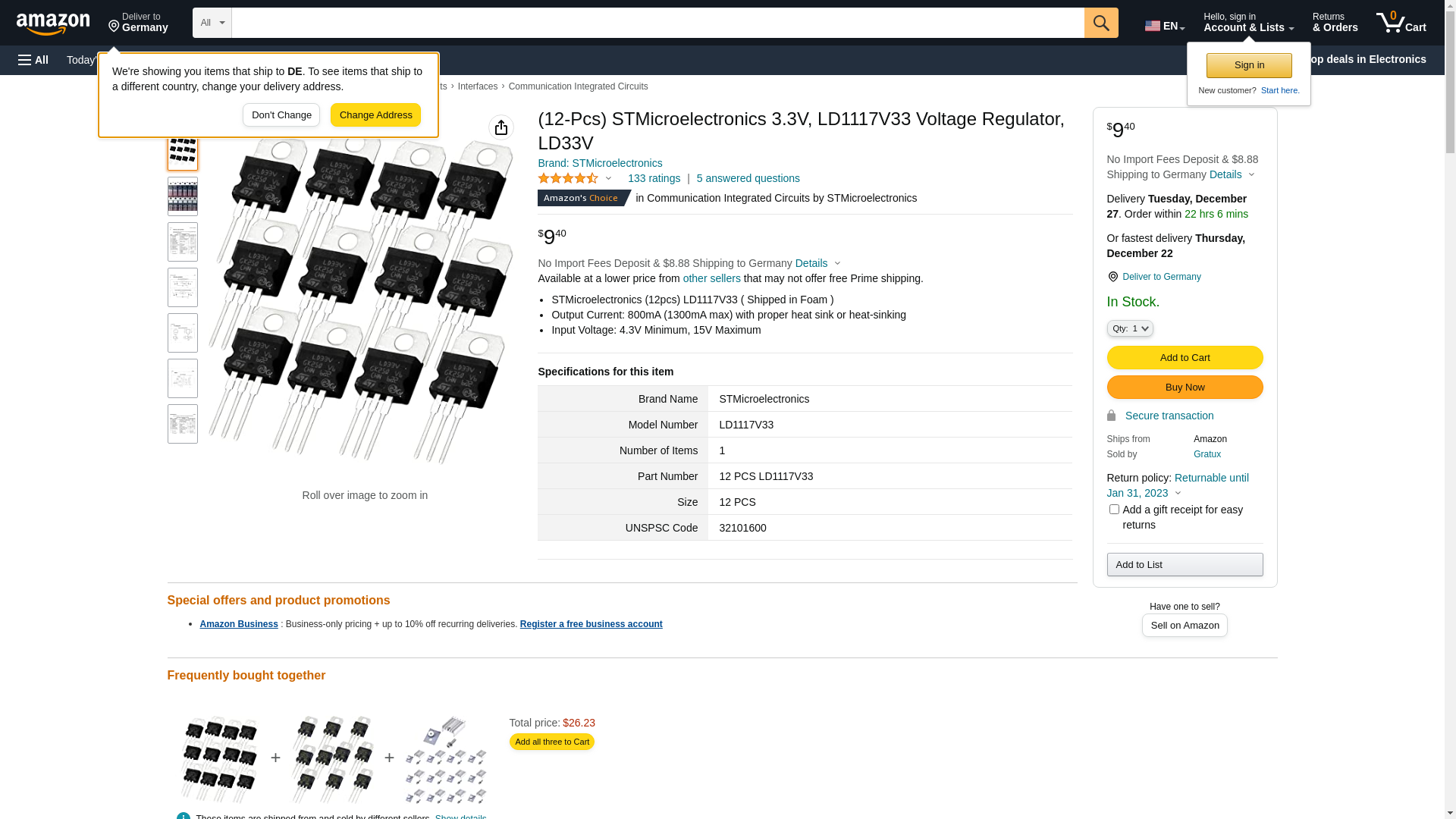 12pcs of 3.3V 950mA LD33V LD1117V33 Linear Voltage Regulators. Part number LD1117V33. <br><br>California Prop 65 Warning WARNING: Can contain chemicals that expose you to Cancer and/or Reproductive Harm www.P65Warnings.ca.gov