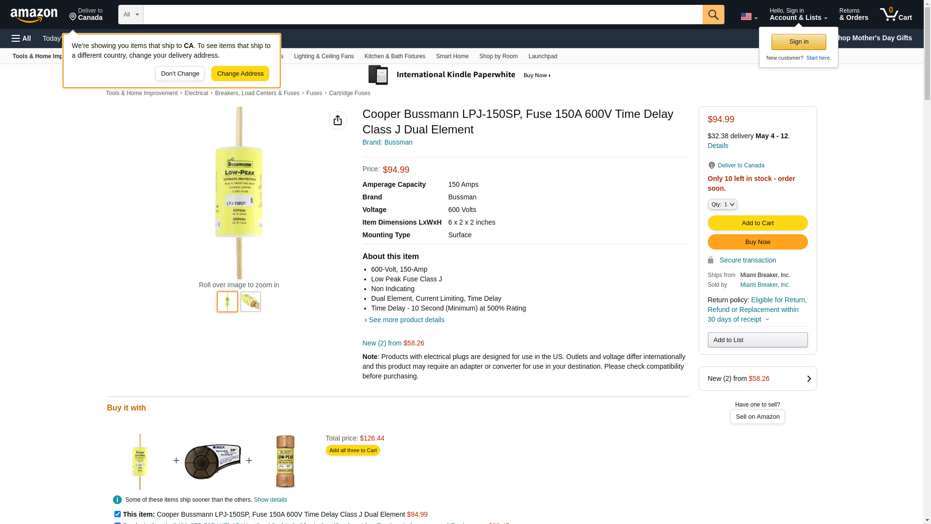 | Waldom | EATON LPJ-150SP | 1 | 1 | 1 @ $221.84, 2 @ $213.31, 5 @ $204.78 | |