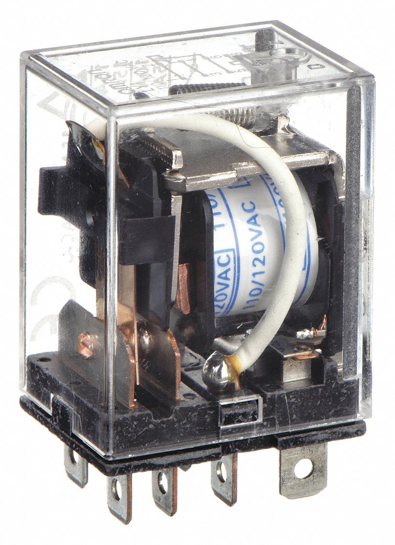 - Price For: Each Pins: 8 Contact Material: Silver Alloy Features: Arc Barrier Equipped, High Dielectric Strength (2000VAC), Long Dependable Service Life Assured By Ag-Alloy Contacts Standards: UL Listed, CSA Certified, CE Marked, TUV Socket Code: D Contact Form: SPDT Item: Plug In Relay Coil Volts: 120VAC Push To Test: Manual Green Environmental Attribute: RoHS Compliant